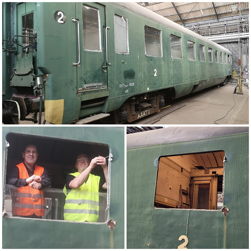 Parallèlement, l’atelier continuera de suivre les restaurations en cours de notre Allège Postale Alsace Lorraine et des bogies de la voiture OCEM Dyle et Bacalan B11 n°54763, toutes deux monuments historiques; ces restaurations sont effectuées avec la participation de notre partenaire SDH Fer et le soutien de souscriptions en partenariat avec la Fondation du Patrimoine.