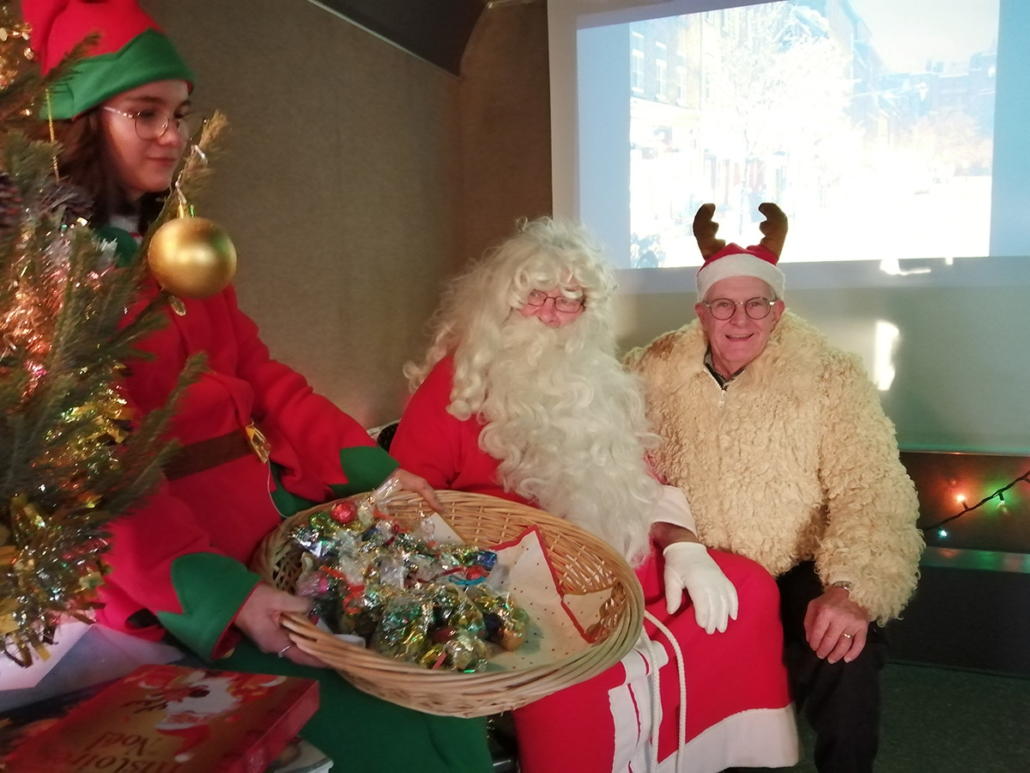 Plus de 115 voyageurs, sans compter les bénévoles de l’association déguisés en Père Noël, en lutines et lutins, en cheffe de chorale et même en cerf! Tous affichaient une mine réjouie dans le reflet des guirlandes lumineuses et des boules de Noël.