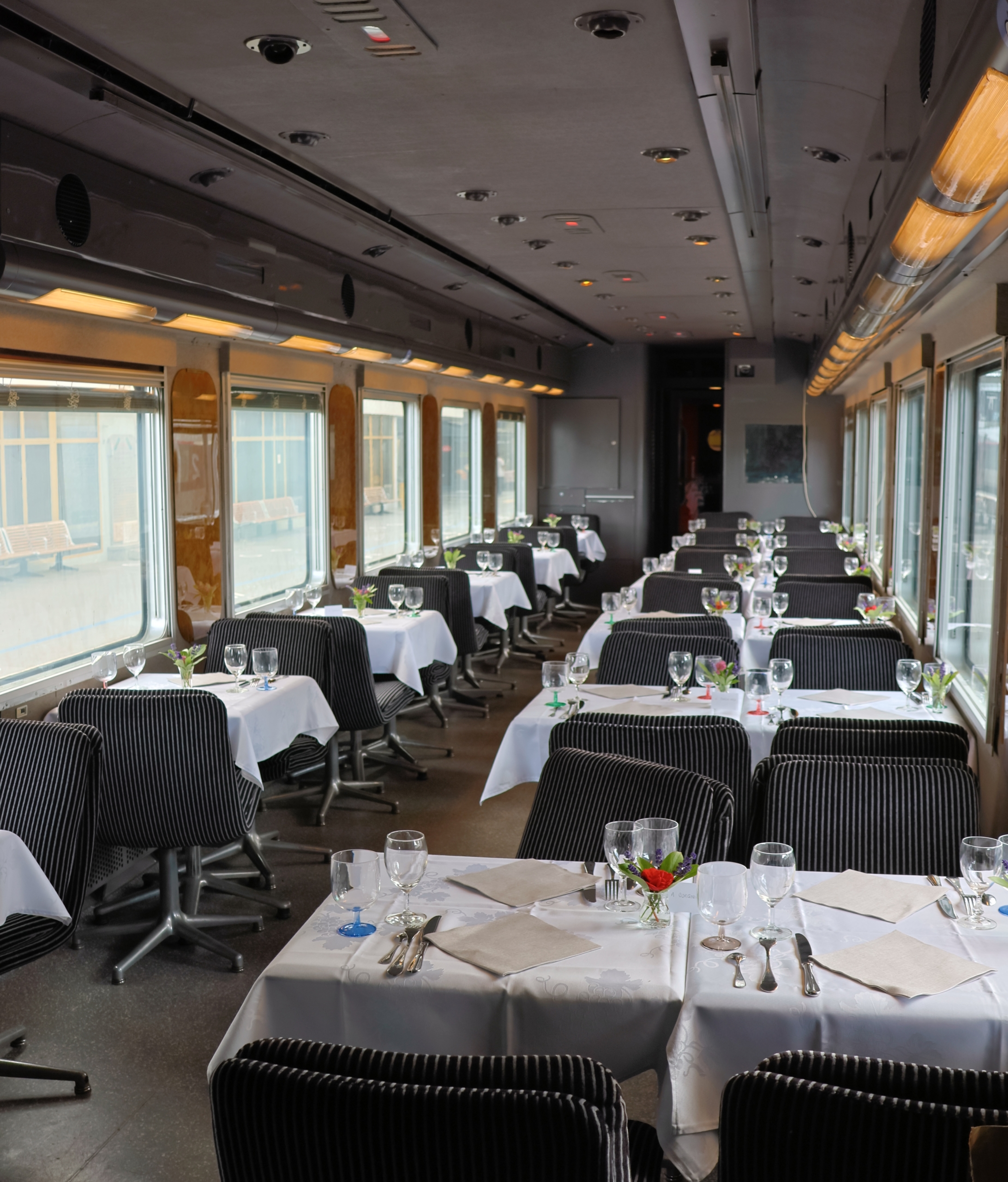 Confortablement installé dans votre compartiment, notre équipe viendra à votre rencontre pour vous apporter un délicieux panier repas préparé par notre traiteur si vous avez choisi cette option. Vous pourrez ainsi savourer votre dîner tout en traversant les départements de l’Essonne et des Yvelines. Vous aurez également l’opportunité de profiter d’un repas à bord de notre voiture Club Restaurant, en supplément (nombre de places limité).